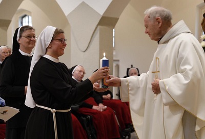 En Alemania la novicia recibe un velo blanco al ser admitido en el noviciado. Para la primera profesión recibe el velo negro.